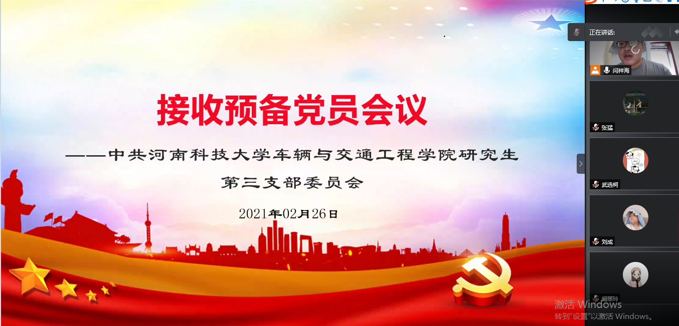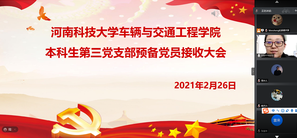2021年2月26日上午10时,7003全讯白菜网研究生三个党支部和本科生第三党支部分别在线上召开党员大会,接收34名预备党员。会议分别由四个学生党支部书记主持。