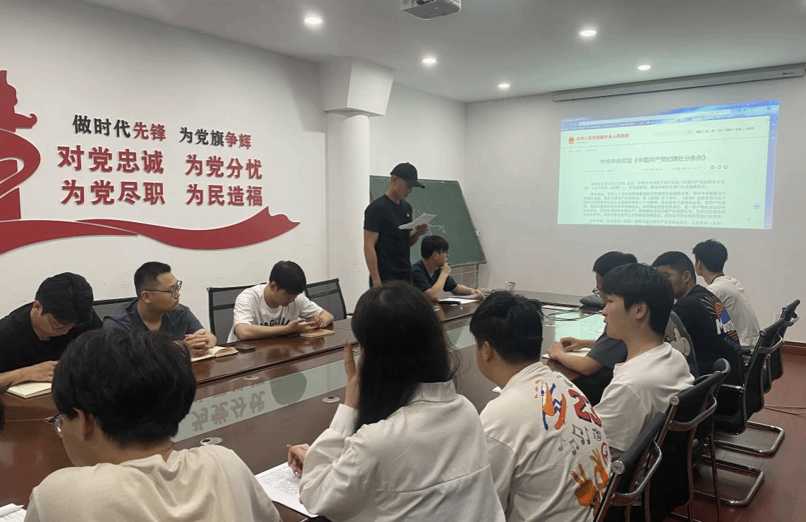 会上,李艳红同志大领学新修订的《中国共产党纪律处分条例》第1章至第3章相关内容。与会党员自身学习、生活实际情况进行交流研讨:付康谕同志表示,要自觉加强党性修养,把党性教育贯穿于平时的学习之中,使之常态化、规范化;辛飞同志发表学习感悟,唯有对党章党规党纪持有敬畏之心,又有战战兢兢的畏惧心,才不至于被实用主义、功利主义和虚无主义的价值观所“捆绑”;张智钦表示,作为大学生党员,要坚定政治信仰,不忘初心使命,始终做政治上的明白人。