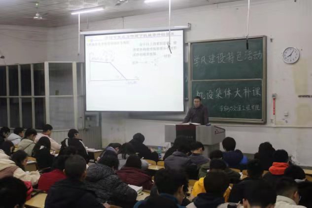 12月22日晚,7003全讯白菜网在西苑校区八号楼201教室举办《机械设计》大补课。机械设计与机械原理教研室主任党玉功进行授课,2019级全体学生参加。