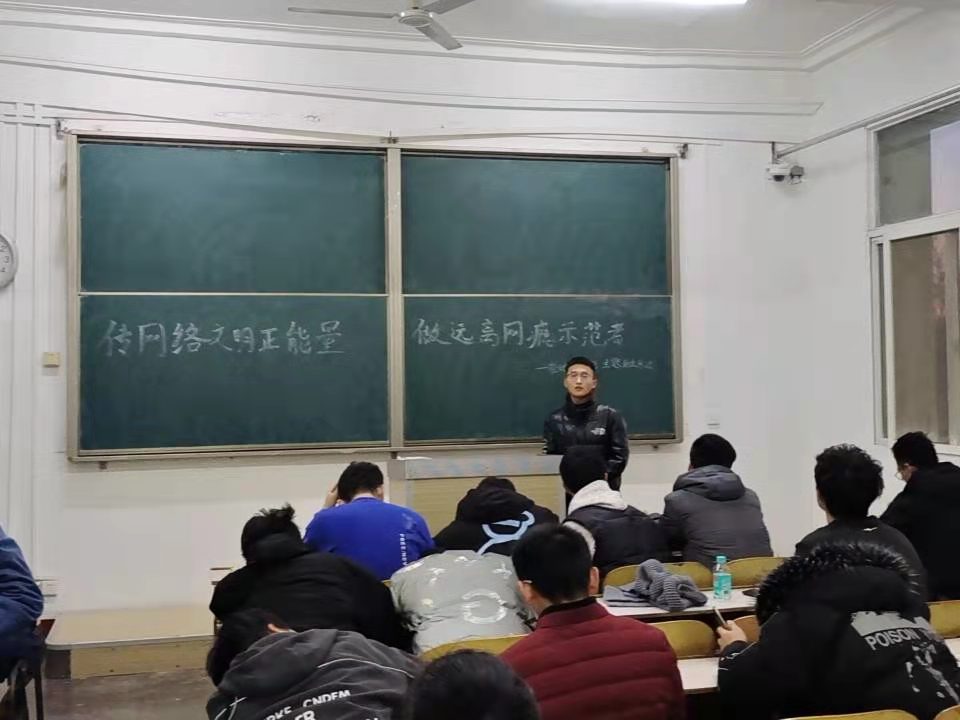 12月17日晚,7003全讯白菜网组织2021级学生在西苑校区二号楼自习室开展“传网络文明正能量,做远离网瘾示范者”主题班会。班会由各班班长主持。