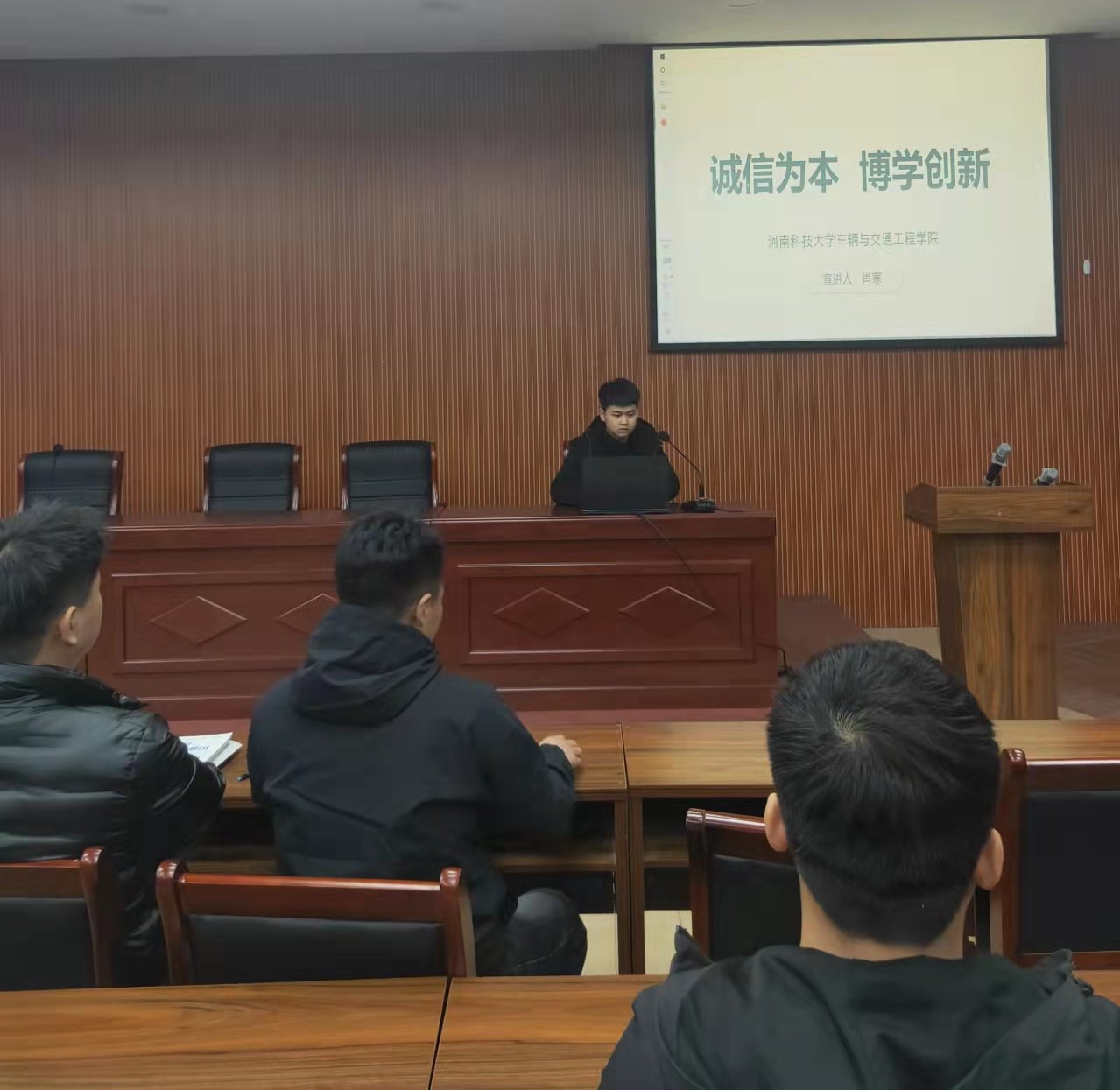 12月5日下午,7003全讯白菜网在西苑校区六号楼101室举办了研究生“诚信为本,博学创新”主题宣讲, 宣讲由研究生肖寒同学主讲,学院2021级全体研究生参加。宣讲活动由院研究生辅导员王运玲主持。