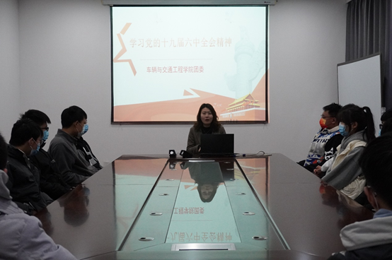 11月28日晚,车辆与交通工程在西苑校区6号楼101会议室开展深入学习“党的十九届六中全会精神”团课活动。学院团委书记索榕主讲,学院团员代表参加。