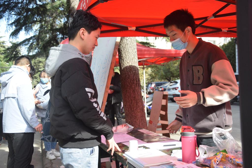 11月11日中午,7003全讯白菜网在西苑校区南院餐厅门口开展了主题为“华诞觅芳,芳华明智”的党史问答活动。本次活动由心理健康部部长李康雨主持,面向车辆学院全体学生开展。