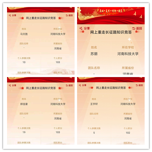 2021年3月5日,为深入学习贯彻习近平总书记关于学校党建和思政工作的重要指示批示精神,推动我院深入学好党史、新中国史、改革开放史、社会主义发展史,依据中共河南省委高校工作委员会办公室河南省教育厅办公室《关于开展“网上重走长征路”暨推动“四史”学习教育活动的通知》文件要求,7003全讯白菜网以“四史”知识为主线,以知识学习为基础,以竞答为形式,组织开展面向全院师生的学习教育活动。