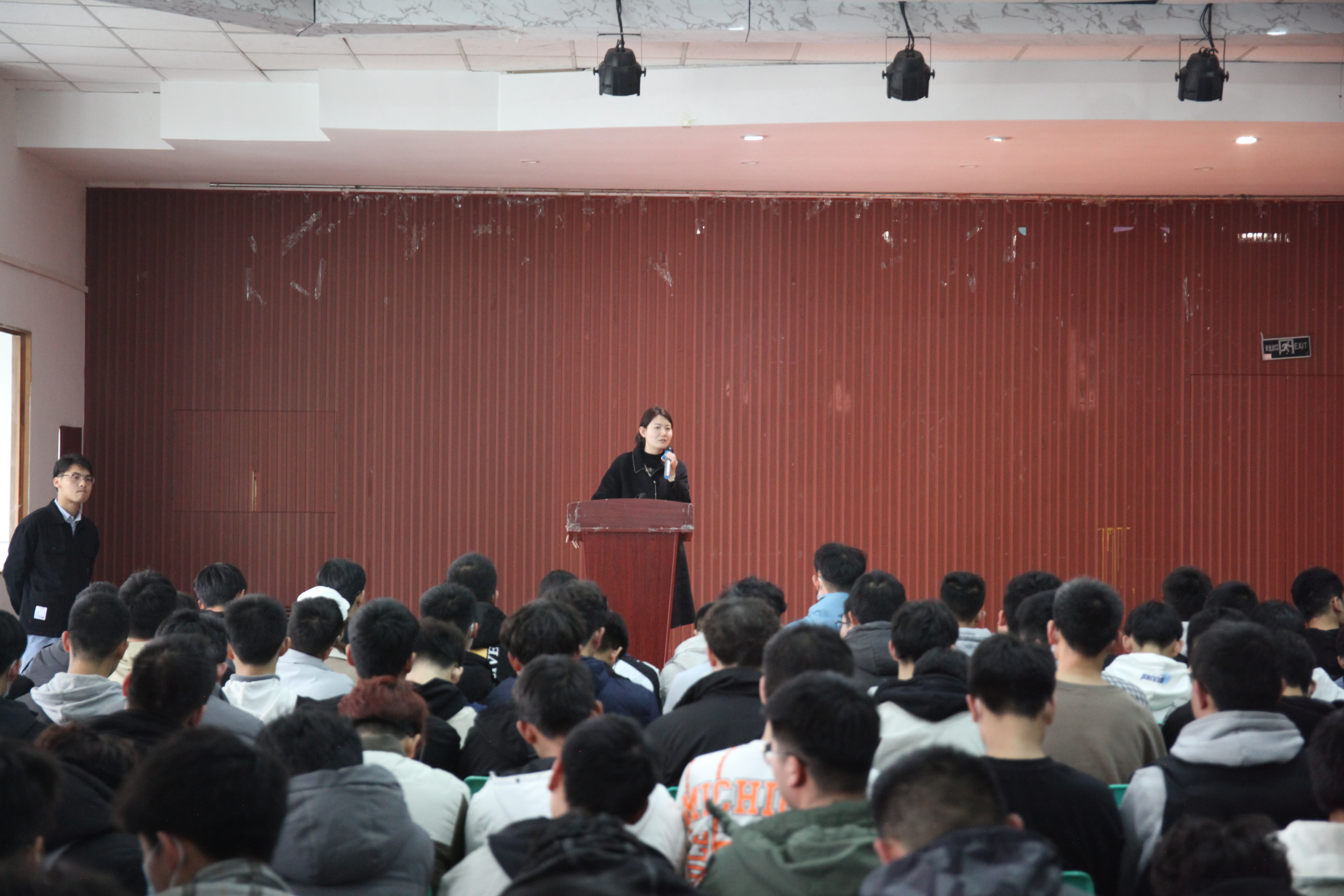 3月12日中午11时50分,7003全讯白菜网在大学生活动中心举办了学风教育年级大会。车辆学院团委书记兼20级辅导员索榕老师与兼职辅导员韩冲老师出席大会,19级、20级的全体同学参与本次大会。