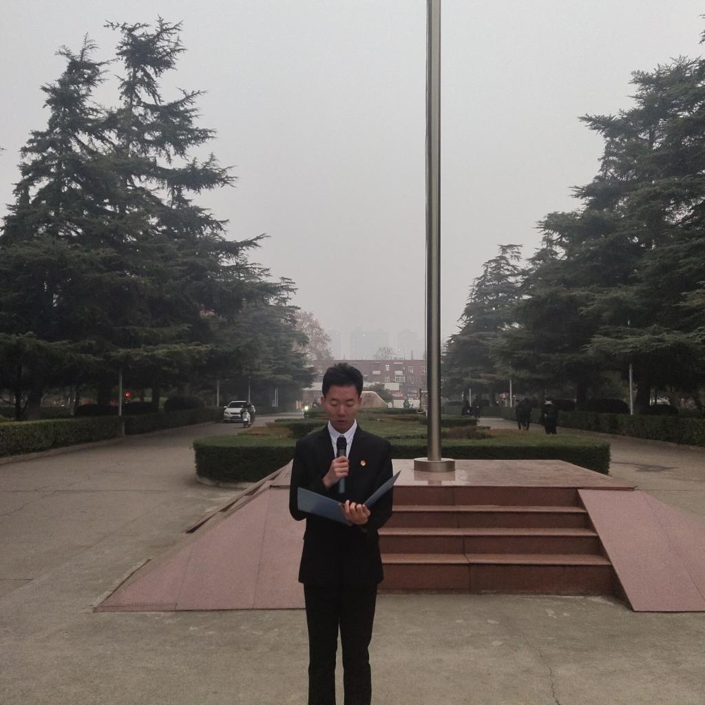 晨曦徐徐拉开一天的帷幕。全体成员在南苑国旗广场集结完毕后,由主持人宣布“升旗仪式现在开始”。首先,由国旗护卫队出旗,升旗。在庄严的国歌声中,国旗缓缓升起。而后,我院团委学生兼职第二副书记康丙林以《两个一百年,你我同共勉》为主题进行了演讲。他对同学们提出了要求,正当最好年华,要志高存远,努力奋斗,将梦想付诸行动,为我国2020年全面建成全面小康社会而奋斗。接着,我院先锋传媒中心副主任王奥以《不忘初心,牢记使命,为实现‘两个一百年’奋斗目标顽强奋斗》为主题发言,阐述了对于现在的青年初心和使命的重要作用,呼吁当代青年要全面学习,提升素养,做好党和国家的接班人。最后,我院学生会主席团成员任家毅以《两个一百年奋斗目标》为主题进行演讲,对我国社会主义发展蓝图做了简单介绍,倡导同学们个人发展要与国家发展相联系,怀揣梦想,脚踏实地。到此,升旗仪式圆满结束。