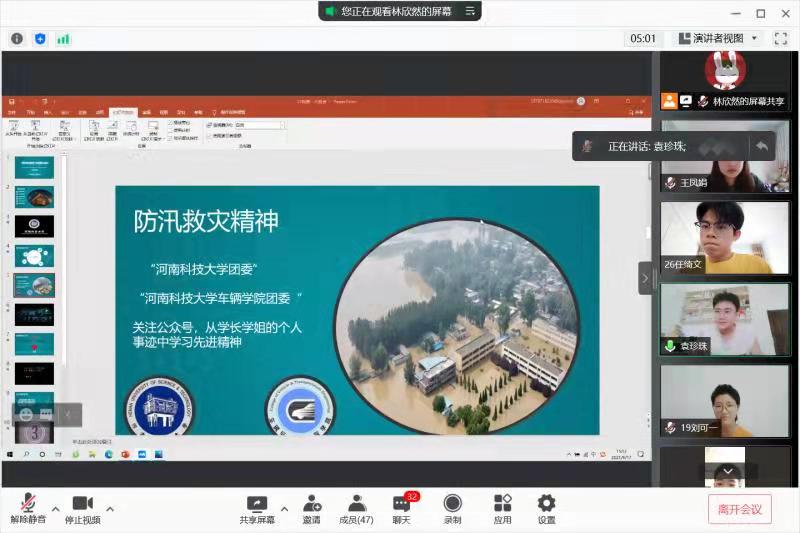 为引导广大学生弘扬防汛救灾的伟大精神,凝聚战胜困难、夺取胜利的青春力量。9月17日下午,7003全讯白菜网于线上开展了“防汛救灾”主题班会。本次班会由各班班长主持,全体学生参加。