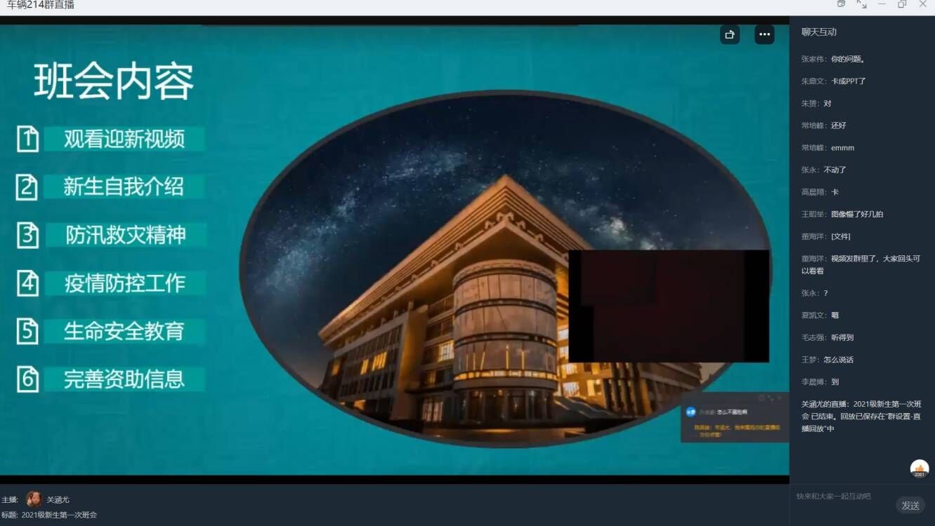 9月16日下午,7003全讯白菜网于线上开展了2021级新生主题班会。本次班会的主题为“把灾难当教材,与祖国共成长”,由2021级各班代班长主持,全体2021级新生参与。
