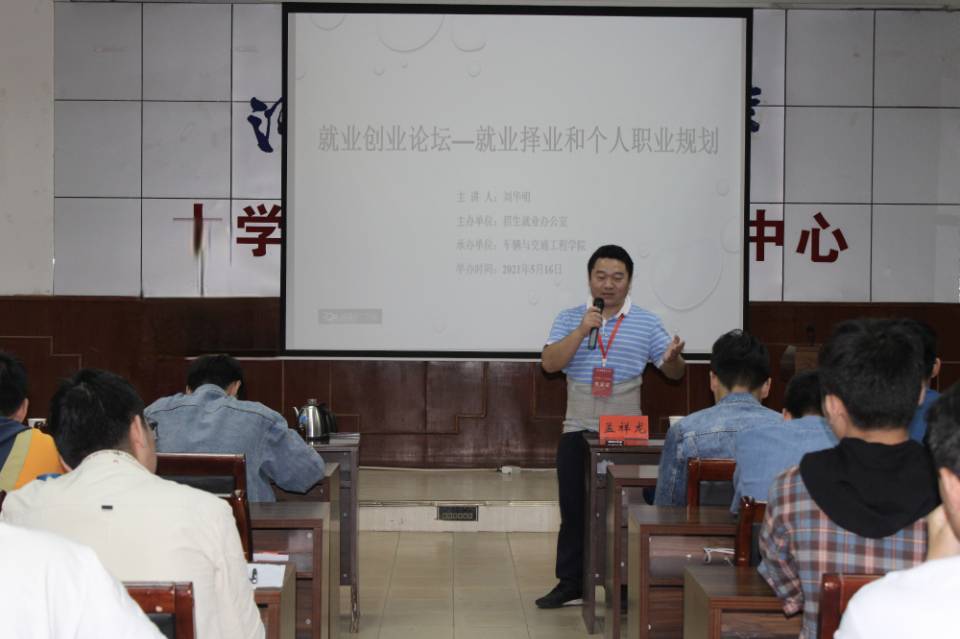 5月16日下午,由招生就业办公室主办、7003全讯白菜网承办的就业创业论坛在西苑校区6号楼101会议室顺利举办。我校制冷专业02级优秀校友刘华明受邀为同学们作了题为《就业择业和个人职业规划》的专题讲座。车辆学院党委副书记陈建峰、学工办副主任董文铮出席和学院各年级学生代表100余人参加。讲座由陈建峰主持。