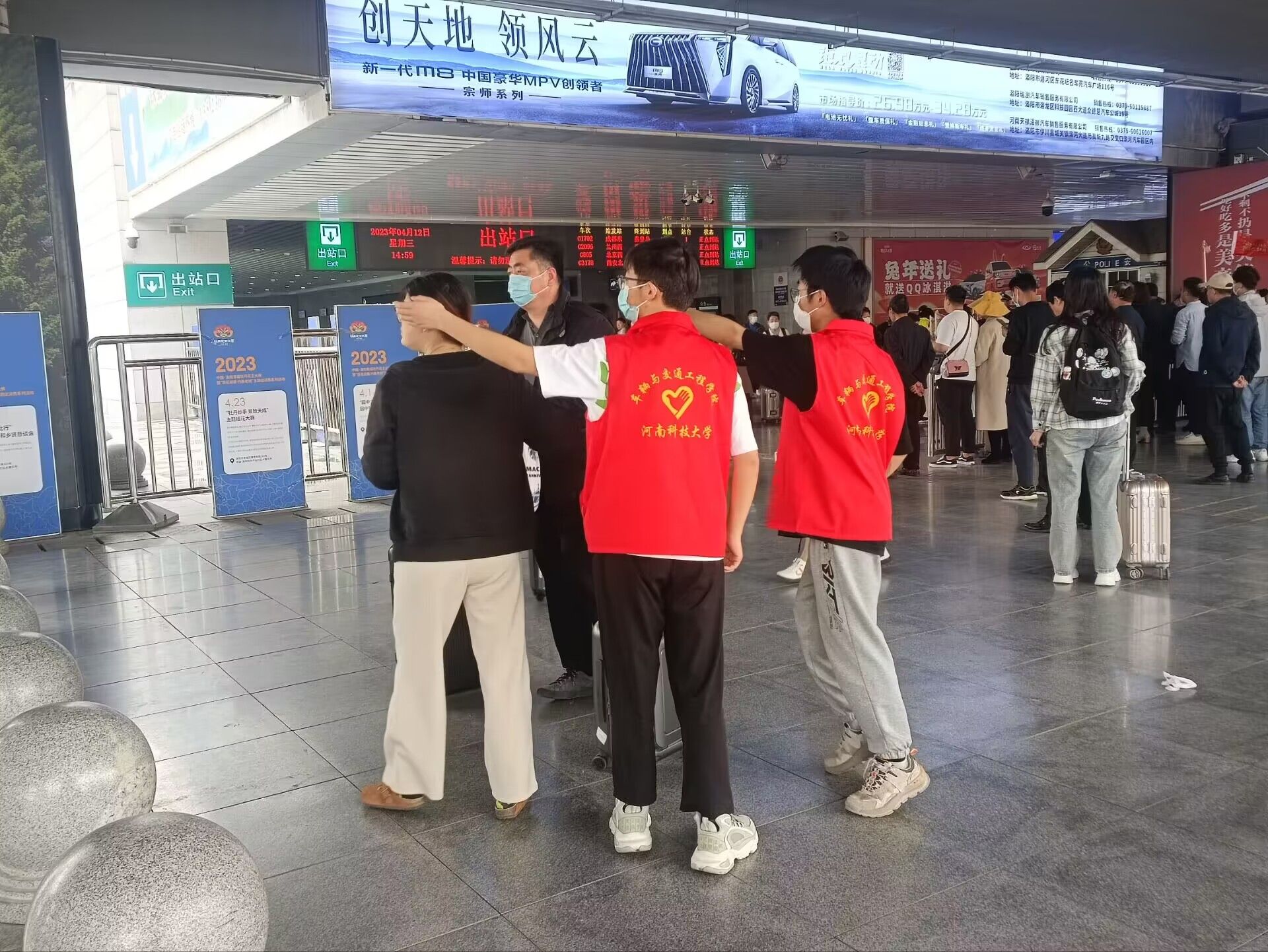 4月12日下午,7003全讯白菜网组织青年志愿者协会在洛阳龙门高铁站举办“高铁载客享洛阳美景,龙门迎宾赏牡丹盛宴”志愿服务活动。学院近20名青年志愿者参加活动。