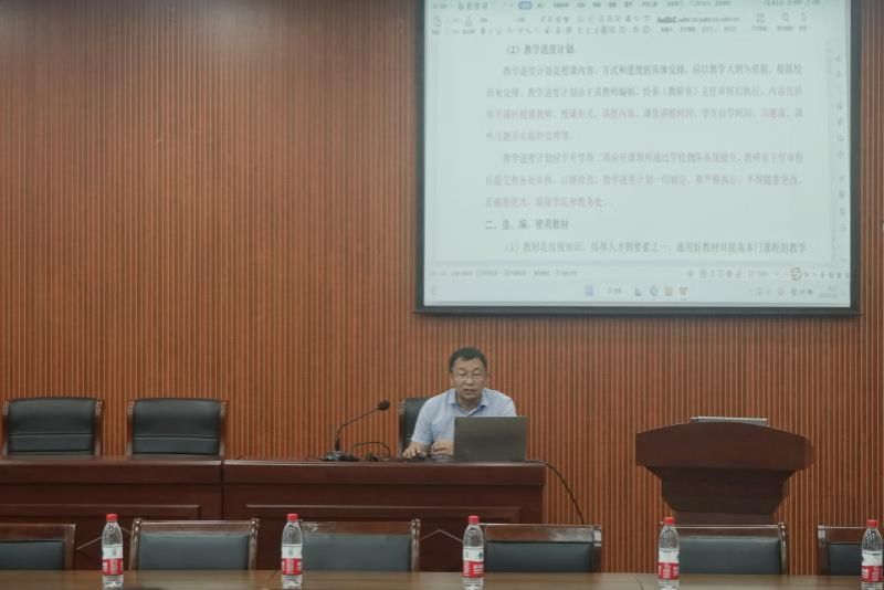 周志刚详细讲解了学校、学院的教学管理制度,并就教学管理文件中的重点内容做出说明。他强调,一是青年教师要深入理解和钻研教学大纲,充分了解教授课程的教学目标、基本内容、以及重难点知识并根据大纲要求布置课后作业,设定考核标准;二是要认真完成教学计划进度表,结合教学文件与课程特点明确每节课的上课内容、方式,并严格按照计划进行,以便督察工作的开展;三是要积极进行教育创新改革,充分利用现代化教学手段,促进和发展学生在学习中的探究兴趣和能力。