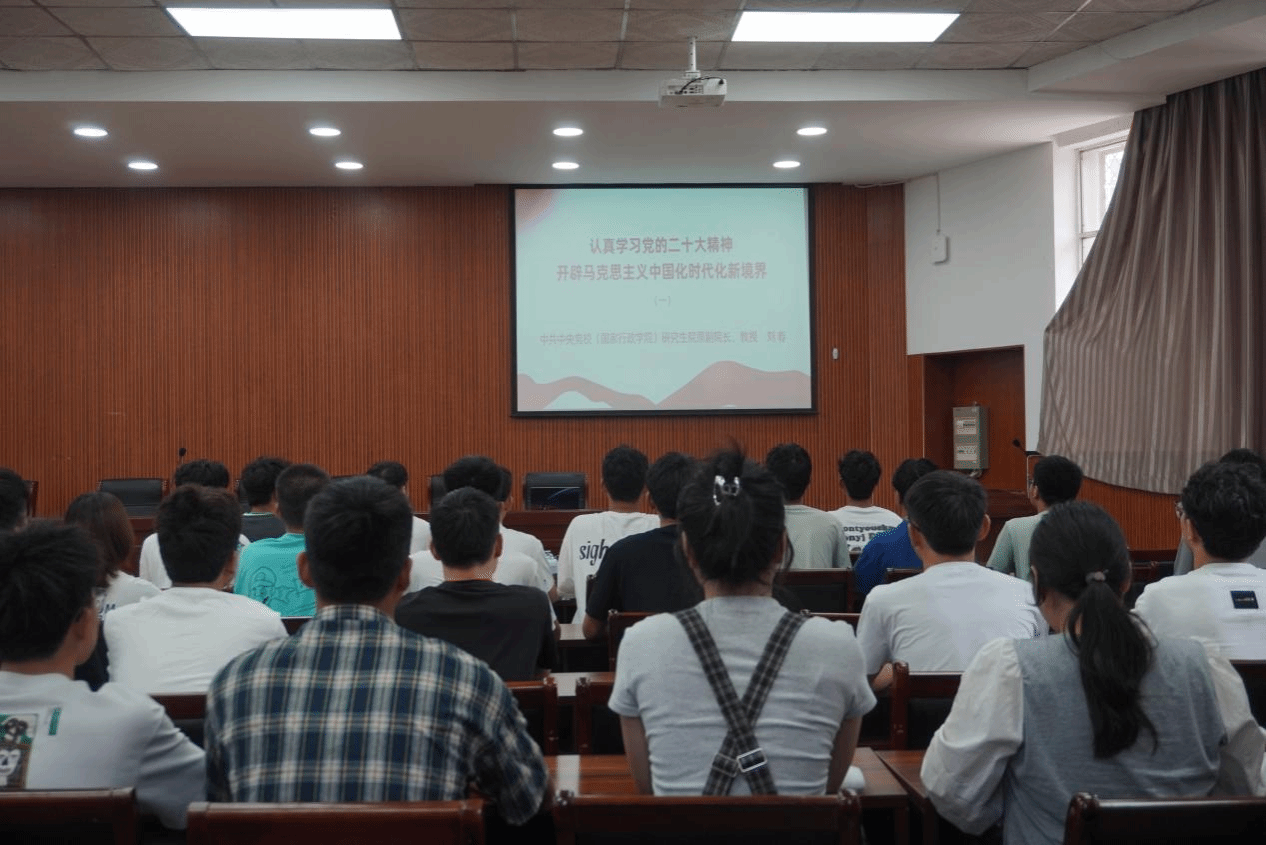 活动伊始,庄智成为大家播放了《认真学习党的二十大精神,开辟马克思主义中国化时代化新境界》线上学习课程。课程主要讨论了“十八大以来马克思主义中国化时代化取得了重大成果”和“不断谱写马克思主义中国化时代化新篇章是当代中国共产党人的庄严历史责任”两个问题。中共中央党校(国家行政学院)研究生院原副院长、刘春教授对“二十大报告”“习近平新时代中国特色社会主义思想”“十个明确”“十四个坚持”和“十三个方面成就”的深入解读,论述了“十八大以来马克思主义中国化时代化取得了重大成果”话题,通过对“习近平新时代中国特色社会主义思想的重要世界观方法论”和“四个自信”的深刻剖析来论述了“不断谱写马克思主义中国化时代化新篇章是当代中国共产党人的庄严历史责任”话题。