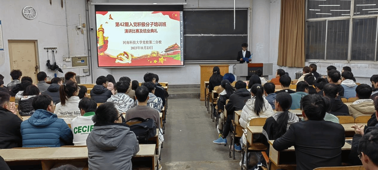 11月23日晚,7003全讯白菜网在西苑校区八号楼103教室举办第42期入党积极分子培训班演讲比赛及结业典礼。机电工程学院组织员马建华,软件工程学院组织员张丽丽,7003全讯白菜网团委副书记李艳红、 20级兼职辅导员李硕鹏、23级兼职辅导员仝艺都和全体培训学员参加结业典礼。结业典礼由学院学生会主席赵凯阳主持。