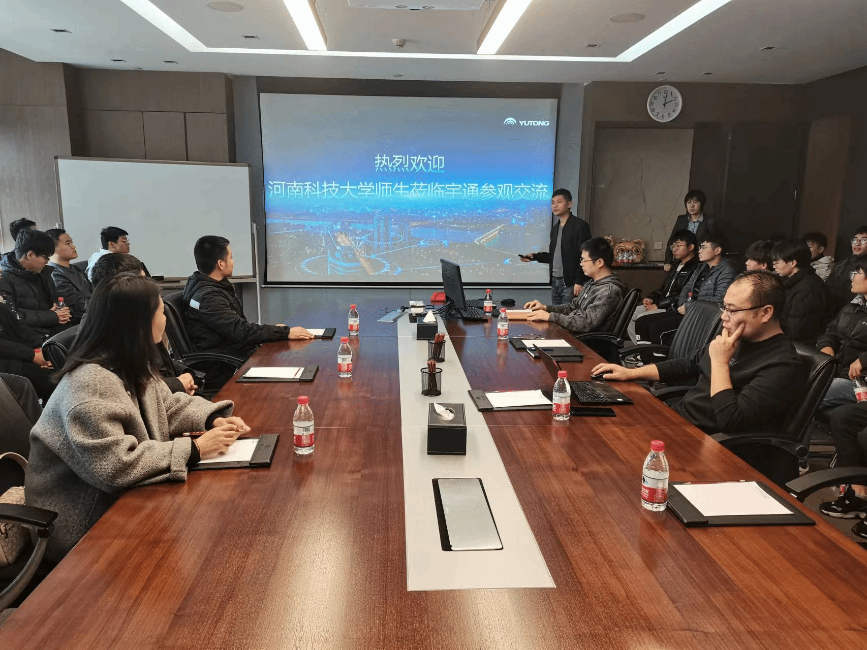 会上,宇通集团海外规划及人才发展科科长臧磊对陈建峰一行的来访表示热烈欢迎,并介绍了宇通海外事业部的工作情况、岗位设置和招聘计划等情况。海外营销管理办公室主任黄云亮重点介绍了公司的海外营销量、运营发展、国际业务、新能源产品、核心技术和服务理念等方面的基本情况,并欢迎我院优秀毕业生到宇通发展。