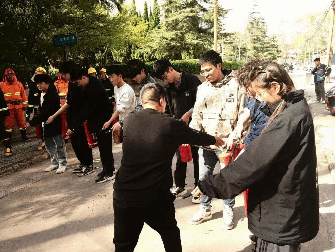 消防安全知识培训后,学院师生来到指定地点,在校保卫科的协助下,进行了消防器材灭火演练,师生们分了几组,分别使用灭火器进行了灭火实操练习。