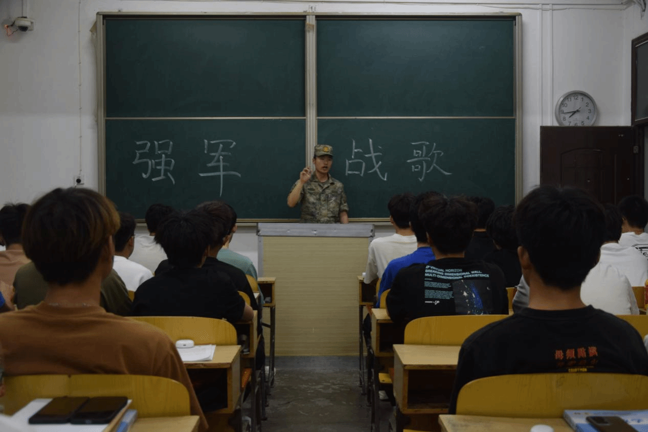 活动现场,气氛热烈而庄重。同学们精神饱满,热情高涨,在教官的带领下,认真学习每一首军歌的旋律和歌词。《强军战歌》《团结就是力量》等经典军歌的激昂旋律回荡在整个自习室,让人仿佛置身于热血澎湃的军营之中。通过学唱军歌,大家不仅感受到了军歌中所蕴含的力量和情感,更深刻体会到了军人的坚韧与担当。