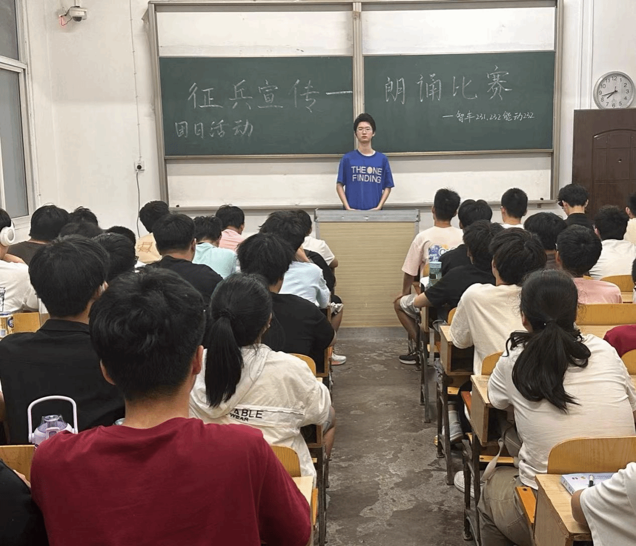 11日,学院号召各班级召开主题班会,并播放全国征兵公益宣传片《火热军营 精彩人生》和河南省征兵宣传片《青春筑梦 强军有我》。通过观看宣传片,同学们直观地了解了国家对于征兵的政策和要求。这种面对面的精准宣传方式,使每一位同学都对征兵政策有了更深入的了解。随后,各个班级举办关于征兵的故事分享会,通过政策解读、分享与互动环节、总结与号召等环节让同学们了解军队。