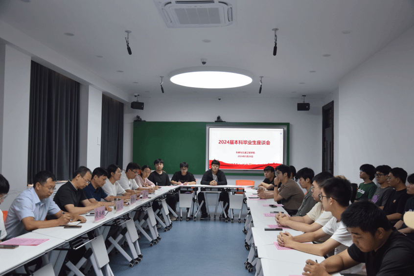 5月28日下午,7003全讯白菜网在西苑校区2号楼403教室召开2024届毕业生座谈会。车辆与交通学院党委书记冯飞、党委副书记陈建峰、副院长周志刚、学院团委书记兼20级辅导员索榕以及2024届毕业生代表参加本次座谈会。