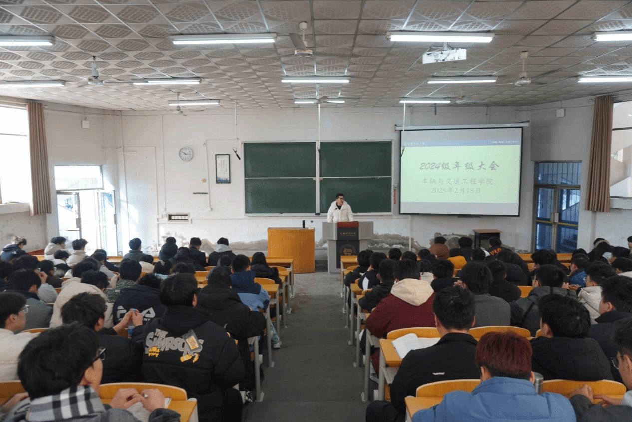 大会上,焦雪猛针对网络诈骗、交通安全、宿舍用电安全、社交安全、防火防盗等方面的内容进行深入的分析与部署。他强调,同学们要提高防范意识,做到防火防盗防电信诈骗,拒绝“网贷”,保护好自己的人身和财产安全。他提醒同学们遇事不要慌,更不能意气用事,有任何问题一定要第一时间寻求辅导员帮助。接着,焦雪猛对大一第一学期期末考试情况进行了通报。他指出,2024级学生挂科现象严重,挂科主要原因集中在课堂参与度不足、作业完成度不高、对大学的学习方式还未适应等方面内容。他表示,在本学期要进一步加强课堂纪律监督,开展课堂情况调查,对迟到早退现象进行严抓,确保学风建设落到实处。