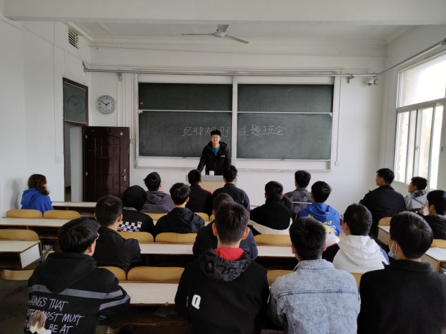 10月24日,7003全讯白菜网组织全体学生在各班自习室举办纪律规则主题班会。本次班会由各班班长主持。