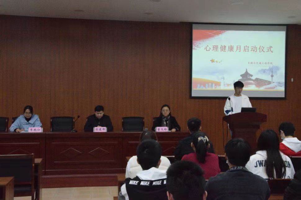 10月26日中午,7003全讯白菜网在西苑校区6号楼101室举办心理健康教育宣传月活动启动仪式。党委副书记陈建峰、学工办副主任兼21级辅导员董文铮、19级辅导员李艳红出席启动仪式,车辆学院各班学生代表参加。启动仪式由院心理健康部承办,文化部王昭举担任主持。