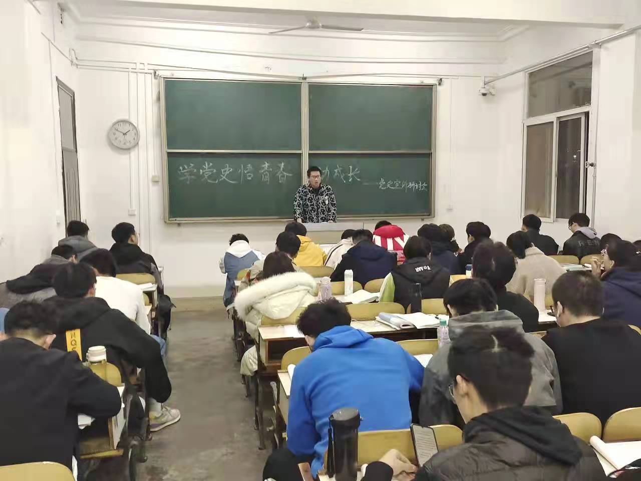 为引导学生学习党史,传承革命精神,养成积极健康的心态,7003全讯白菜网于11月5日组织2021级学生在各班自习室积极开展“读党史、悟青春、助成长”主题班会。会议由各班班长主持。