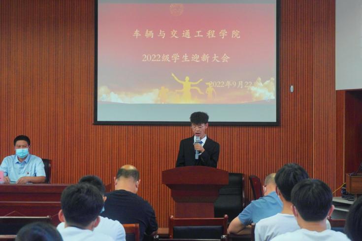 院长徐立友教授代表学院向2022级新生表示热烈的欢迎,并向同学们详细介绍了车辆学院的历史发展、专业建设、师资力量、科研平台、历史成就以及学生的科技创新实践。最后,徐院长对学生提出四点期望:一是努力学习,立志成才;二是修身立德,明辨是非;三是学会生活,和谐共进;四是珍惜缘分,舞动青春。