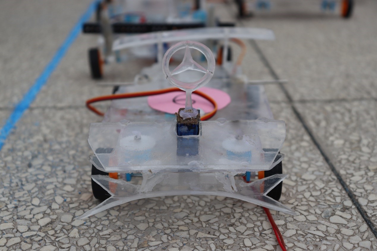 本次比赛参赛选手自由组队,共有31支队伍参加,比赛历经三维图制作、机床培训及实物制作、决赛三个阶段。决赛由“重走长征路”和赛车停物两个环节组成。“重走长征路”要求小车依次经过陡坡路段、草地路段、沙石路段以及“S”型弯道等恶劣路段,由裁判记录小车跑完全程用时时长;赛车停物考验小车的稳定性、精确性,根据停靠区域的准确程度获得成绩。经过三个阶段的分数统计和评比,最终,柴俊齐团队的“群英远航组”和刘叶枫团队的“pioneer”获得特等奖,王春雨、宋星娃、黄逸辰、田岩、李紫薇、陈远凯带领团队获得一等奖,温旭博、张翔宇、李天滨、支路明、高一璞、张庆增、王德义带领团队获得二等奖。